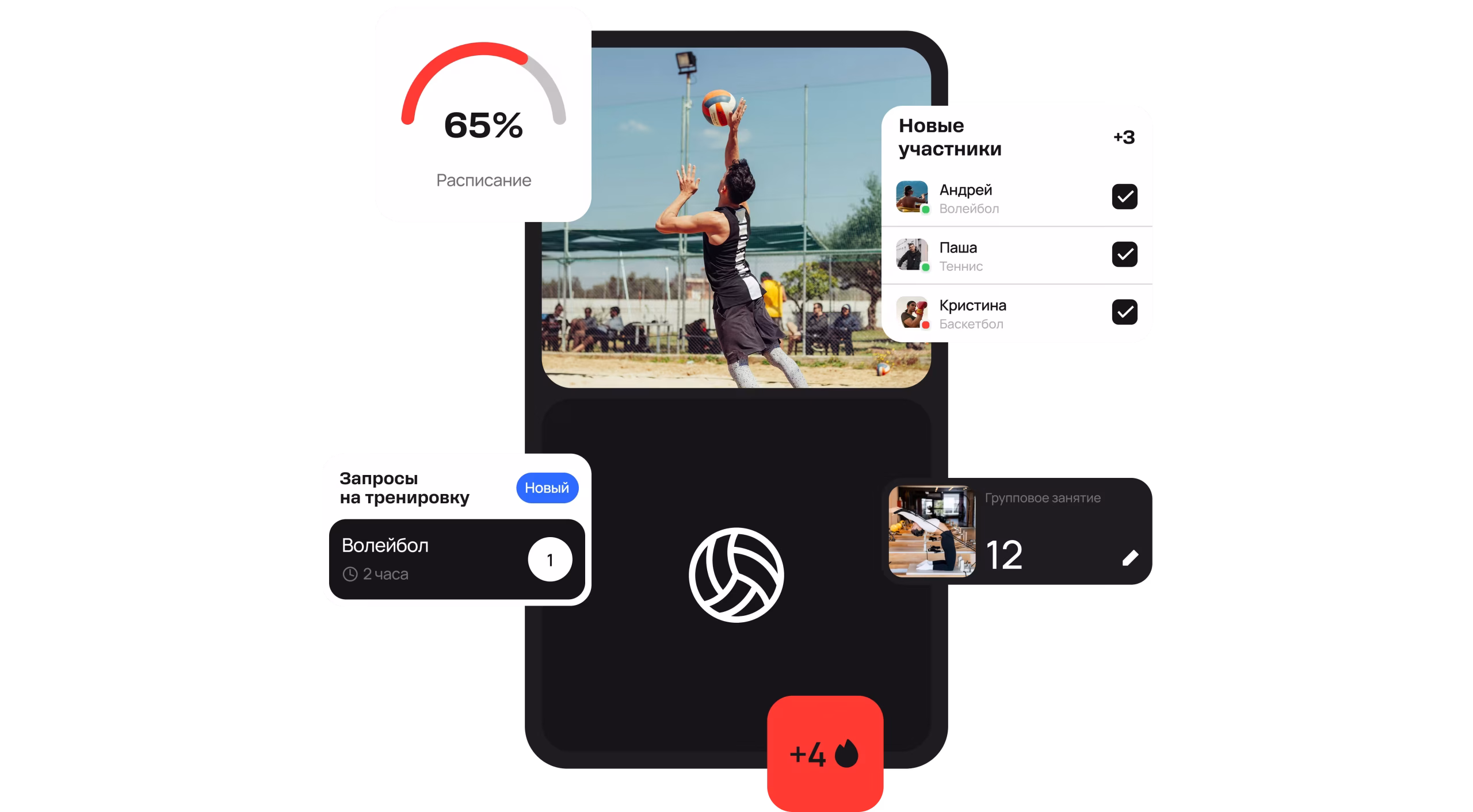 Поддерживайте связь с атлетами, определяйте график и формат тренировок — индивидуальные